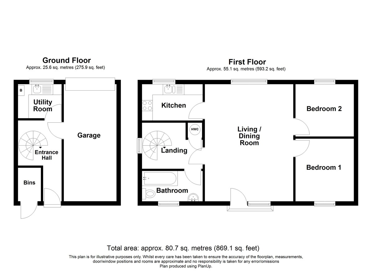 Accommodation comprises hallway, utility room and garage to the ground floor. To the first floor is the landing, living/dining room, two bedrooms and bathroom.