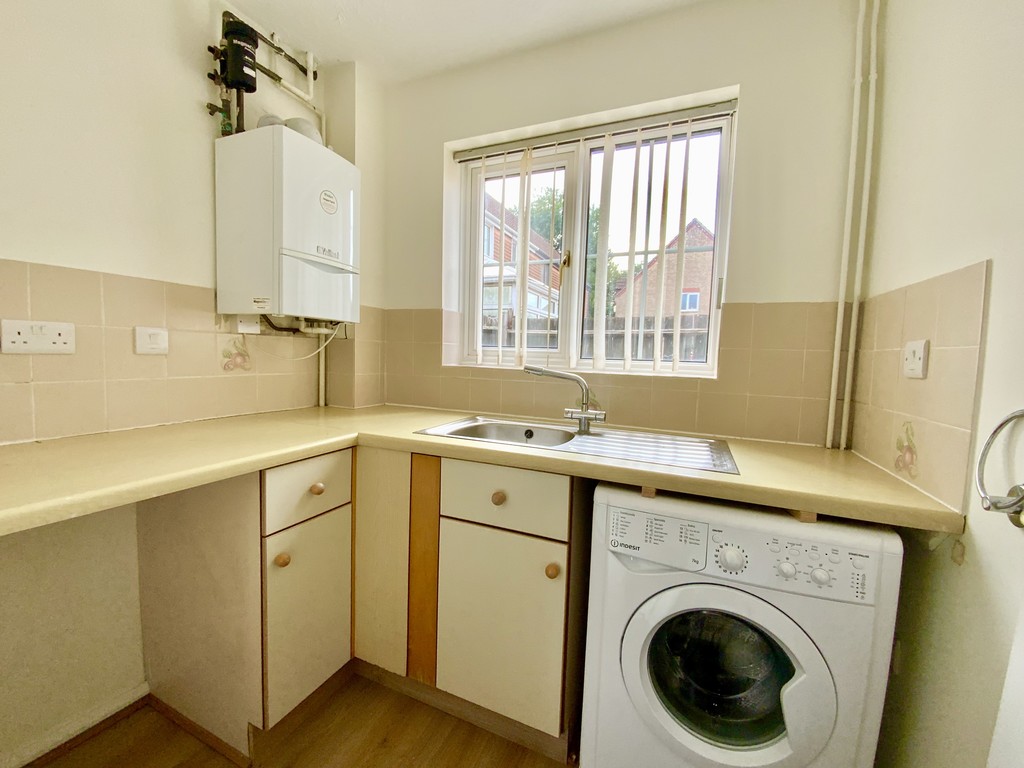 UTILITY ROOM 6' 9" x 5' 3" (2.06m x 1.6m) Wall and base units with roll edge work surfaces and tiled surround, space for two under-counter appliances, single drainer sink unit with mixer tap, wall mounted gas fired boiler, double glazed window to rear.