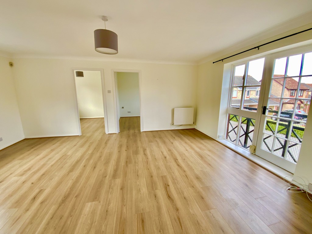 LIVING/DINING ROOM 18' 1" x 13' 8" (5.51m x 4.17m) Dual aspect room with a double glazed window to rear and double glazed window and door onto a juliet balcony to the front, laminate floor, two radiators.