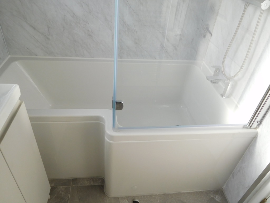 - Bathroom With White Suite And Over Bath Shower