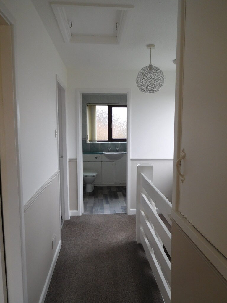 Upstairs two doubles, bedroom one with mirror fronted wardrobes, small third room, Bathroom with White suite and shower off of taps.