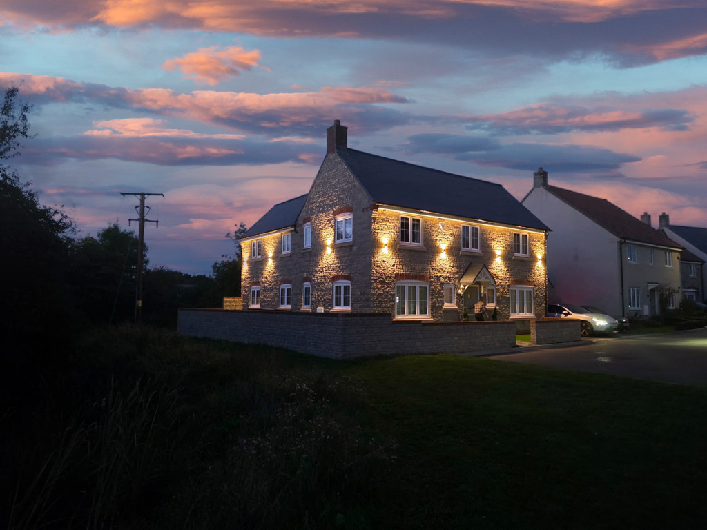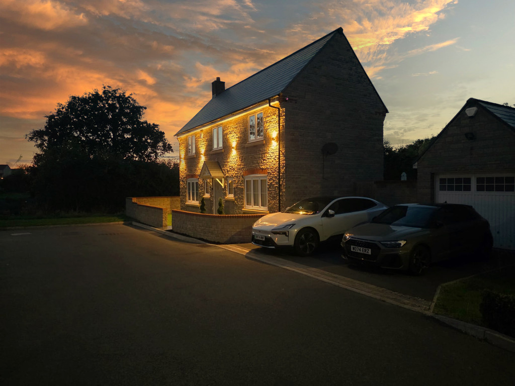 REAR GARDEN Backing onto protected hedgerow and farm land. Fully enclosed via fencing, full width patio, mainly laid to lawn, outside tap, outside electrical point, courtesy door leading to garage, wooden gate leading to double width driveway with electrical charging point.