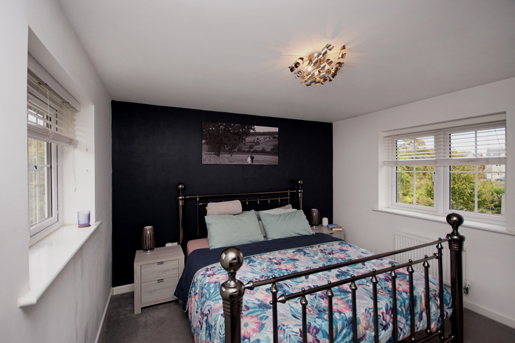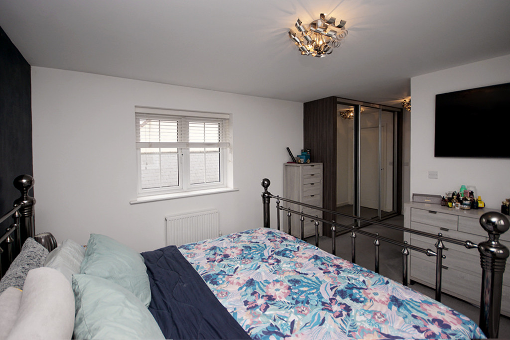 BEDROOM ONE 19' 11" max x 11' 2" max (6.07m x 3.4m) Irregular shaped room. PVCu double glazed windows to both sides, fitted wardrobe, t.v. aerial connection point, double radiator.