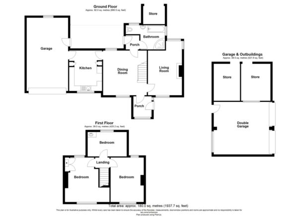 A great opportunity to alter/improve/re-develop (subject to any permissions required) this three bedroom detached house set within grounds of approx. 1 acre with an attached garage and a further detached double garage and stables/stores to the rear.