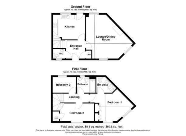 ENSUITE Tiled shower cubicle, WC, vanity unit with inset wash hand basin, extractor fan.