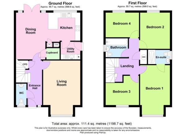 Accommodation comprises hallway, cloakroom, living room, kitchen/dining room and utility room to the ground floor with four bedrooms, ensuite shower room and family bathroom to the first.