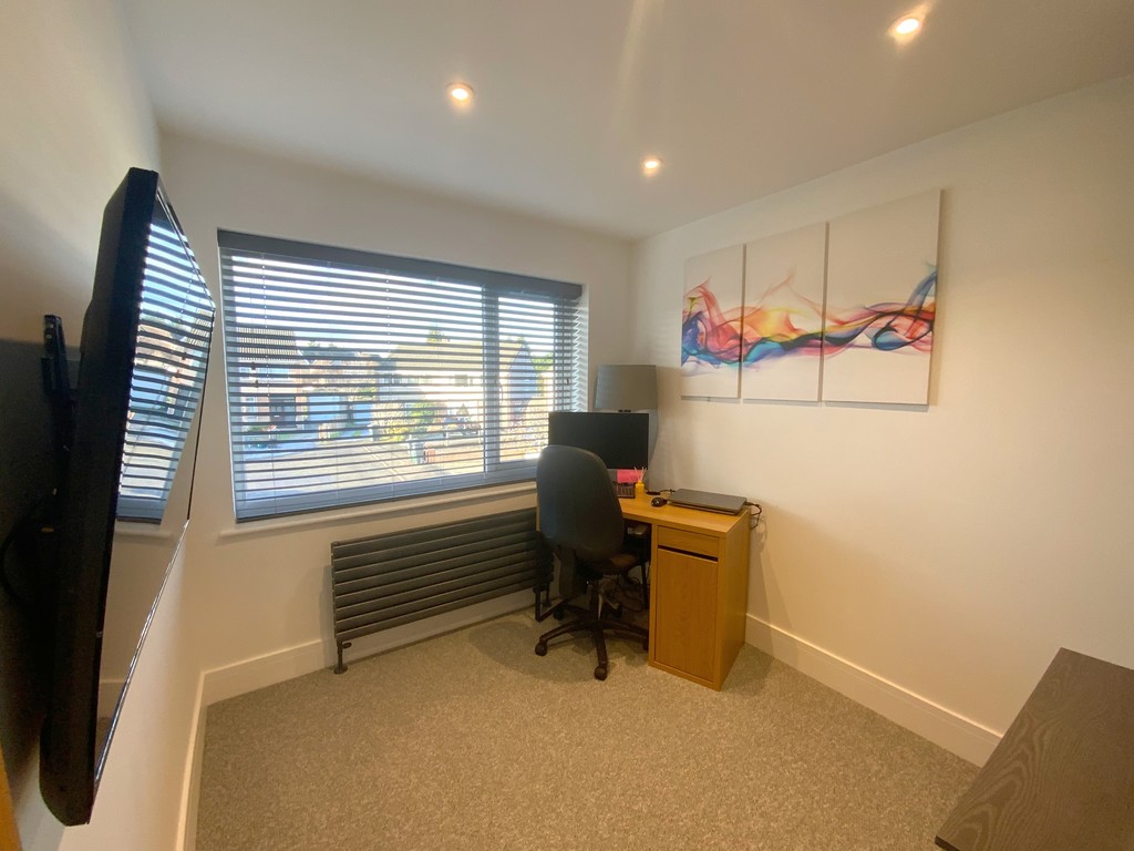 BEDROOM THREE 9' 2" x 7' 11" (2.79m x 2.41m) UPVC double glazed window overlooking front of property, TV aerial connection point, contemporary style radiator, downlighters, fitted cupboard housing 'Worcester' combination boiler.