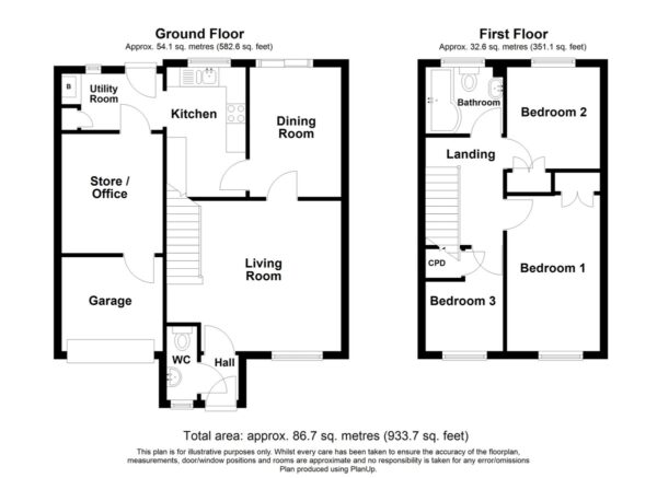 STORE / OFFICE 10' 3" x 8' 5" (3.12m x 2.57m) Part converted garage, power and light, TV aerial connection point, glazed door into utility.