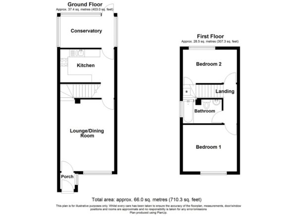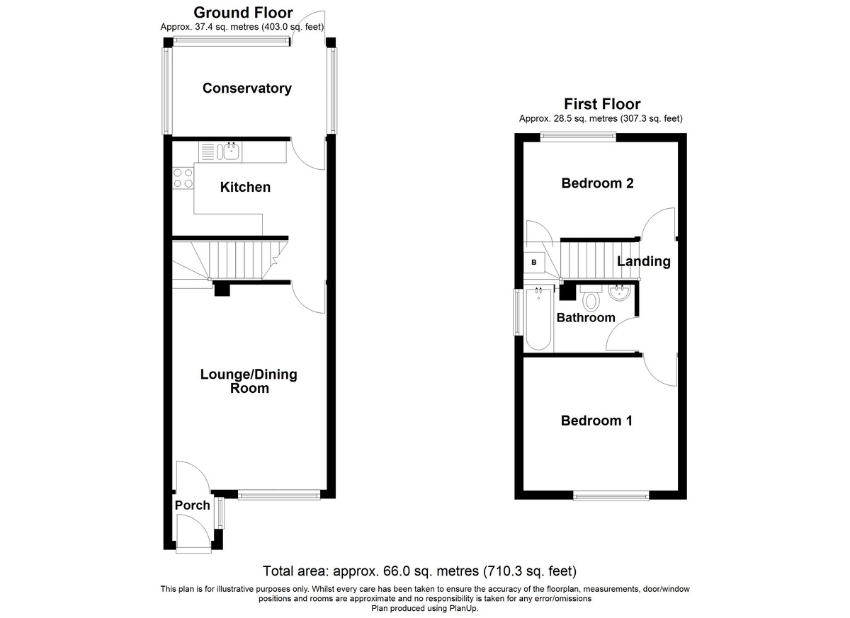 Accommodation comprises entrance porch, living/dining room, kitchen and conservatory to the ground floor with two bedrooms and bathroom to the first.