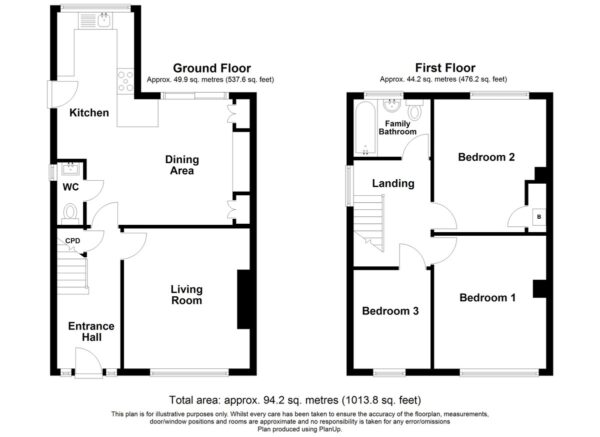 BEDROOM ONE 12' 4" x 10' 9" (3.76m x 3.28m) PVCu double glazed window to front, radiator, coved ceiling.