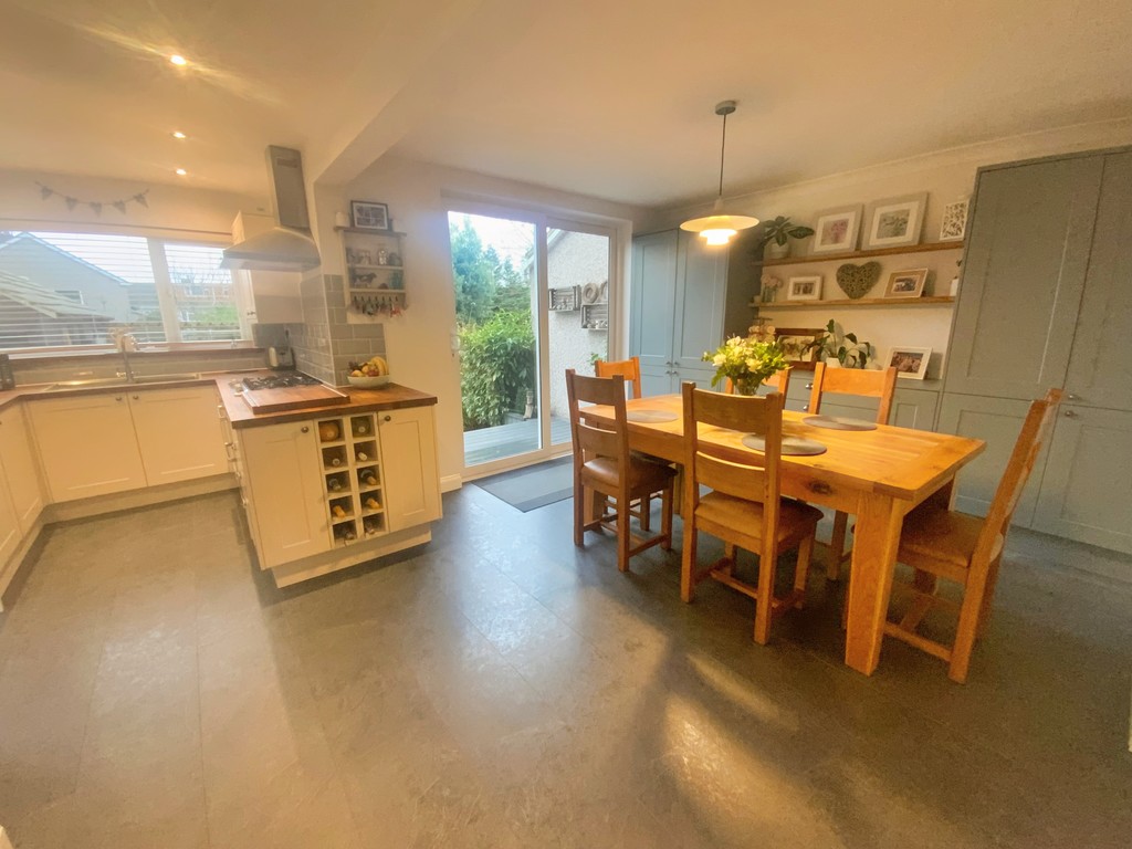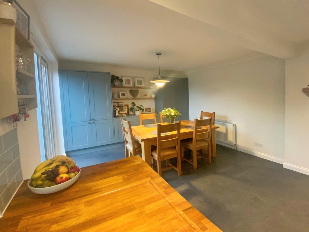 Dining area: Open plan dining area, PVCu double glazed sliding patio doors to rear garden, range of wall and base units, double radiator, coved ceiling.