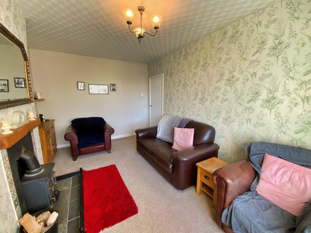LOUNGE 15' 2" x 10' 0" (4.62m x 3.05m) Double glazed window to rear, tiled fireplace with wooden surround and log burner, radiator.