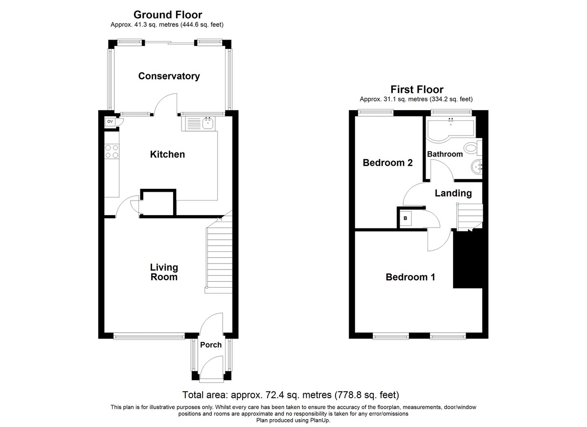 Accommodation comprises entrance porch, living/dining room, kitchen and conservatory to the ground with two bedrooms and bathroom to the first.