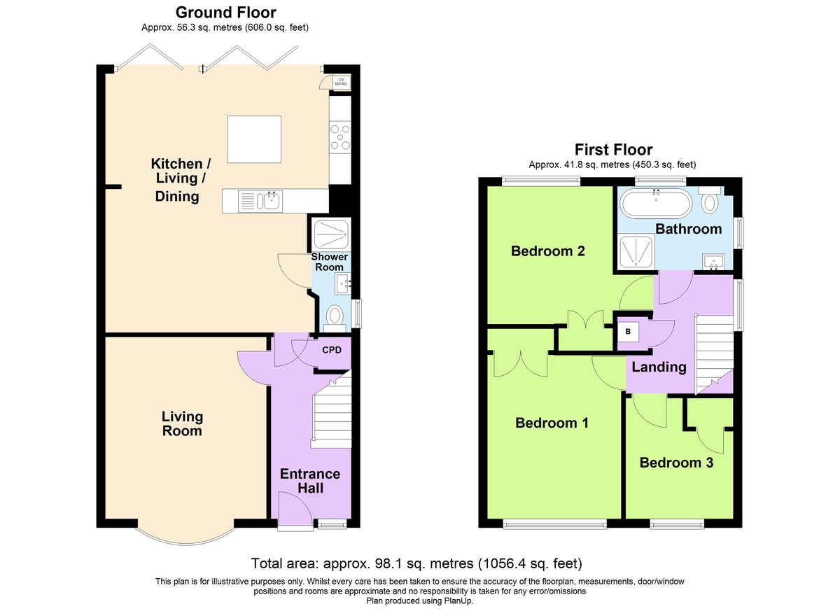 Accommodation comprises hallway, living room, kitchen/living/dining room plus shower/cloakroom to the ground floor with three bedrooms and family bathroom to the first. Gas central heating, double glazing. Modernised and in excellent order throughout.