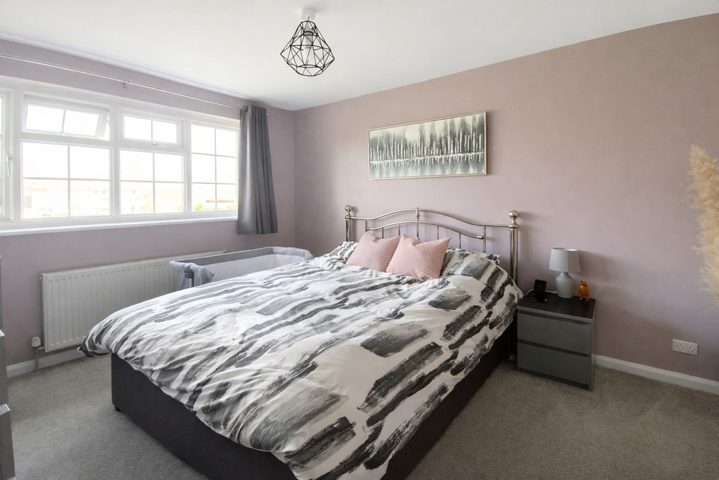 BEDROOM TWO 10' 3" x 12' 1" reducing to 9' 6" (3.12m x 3.68m) Double glazed window to rear, built-in wardrobe, radiator.