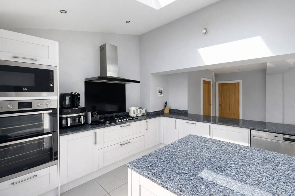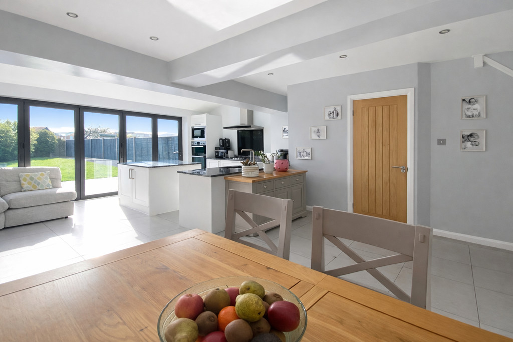 A three bedroom semi-detached house that has been extended across the entire width of the property to the rear that has created a fabulous kitchen/living/dining room overlooking the generous South-facing garden.
