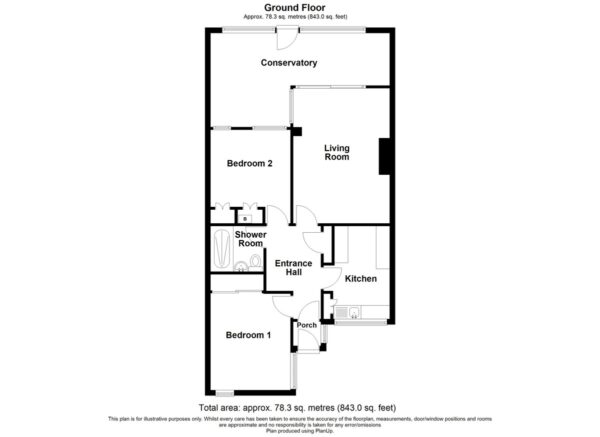 Accommodation comprises porch, entrance hall, living room, kitchen, conservatory, two bedrooms and shower room.