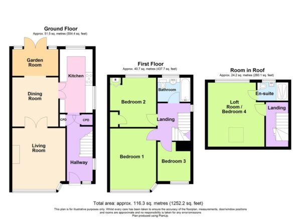 - Four bedrooms (including loft room)