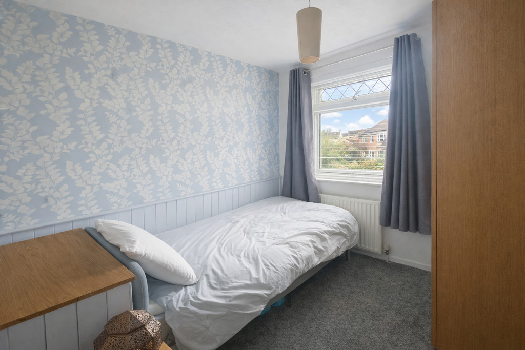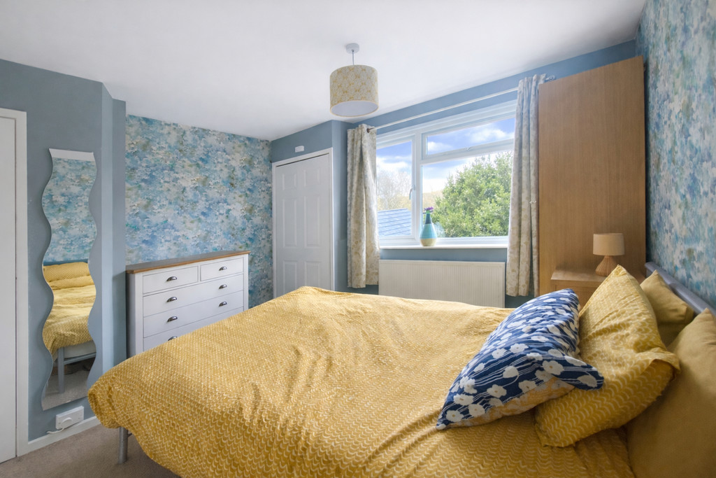 BEDROOM TWO 11' 1" x 10' 4" (3.38m x 3.15m) Double glazed window to rear, cupboard housing wall mounted gas fired combination boiler, shelved storage cupboard, radiator.